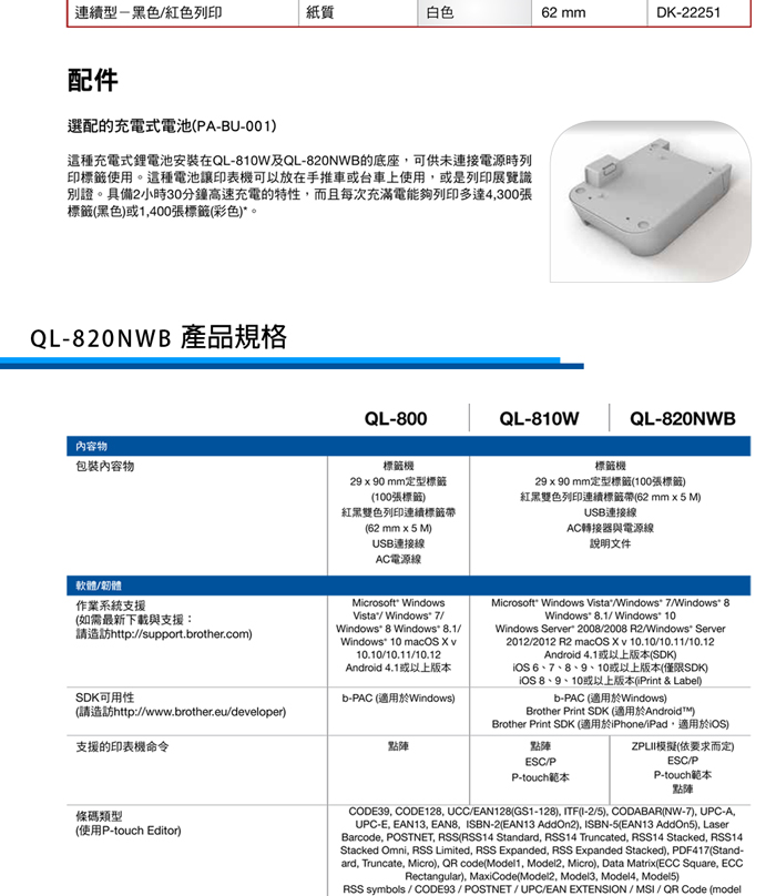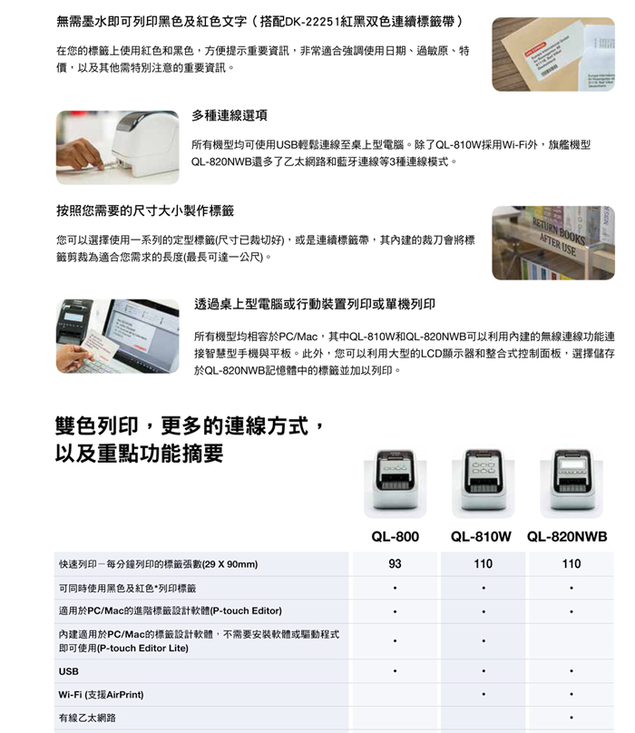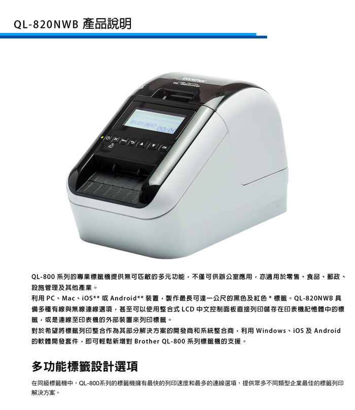 【新機上市】Brother QL-820NWB 商品標示物流管理食品成分旗艦(WIFI)列印機